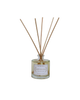 Flaskan är i glas och innehåller 100ml och levereras tillsammans med naturfärgade och svarta pinnar i en vit presentask.