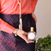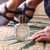 Glasflaskan innehåller 50ml med sprayfunktion och har ett guldfärgat lock. Levereras i en vit ask. Källsorteras som glas, metall och kartong.